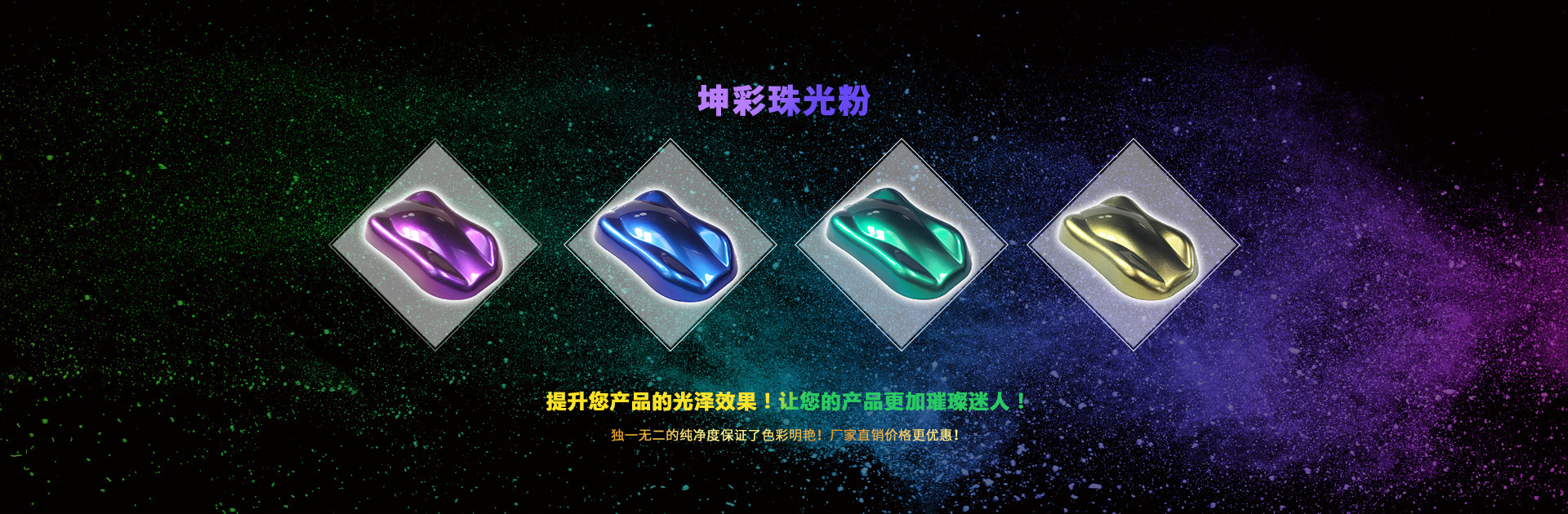 公司精选国际精品颜料,汇集全球品牌。品种多、色彩广、规格齐、货源足。主要产品有金葱粉、珠光颜料、荧光颜料、铝银浆、珠光浆、金粉、银粉、反光粉、夜光粉、铜金粉、色精、有机颜料等上千种品种。……